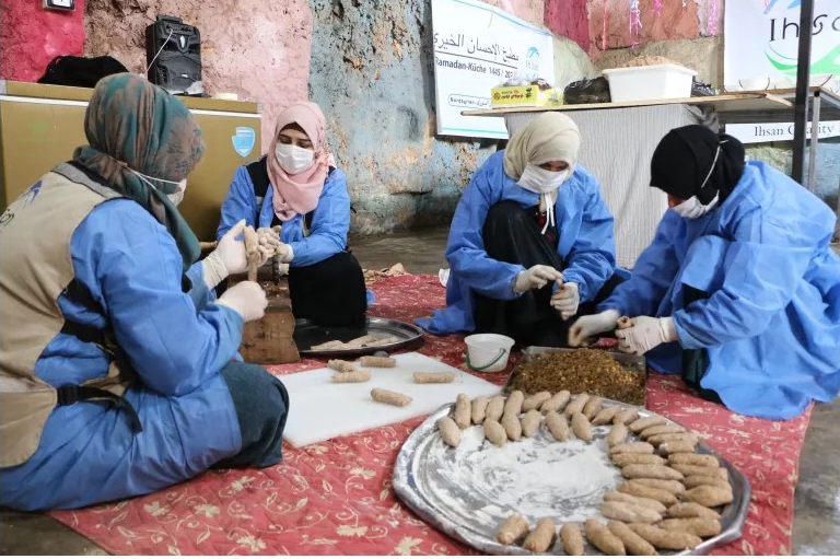 إدلب- نساء FM-لم تمنع أروقة الخيام القماشية والقصص المؤلمة التي تعيش بداخلها الناشطة نجلاء معمار، ومجموعة من النساء الأرامل، جمعهن النزوح، من إطلاق مشروع "مطبخ الخير" لطبخ الأكلات السورية التراثية المشهورة، وتوزيعها على العائلات الفقيرة والمحتاجة من زوجات الشهداء والأرامل في مخيمات "دير حسان" شمال إدلب خلال شهر رمضان المبارك.