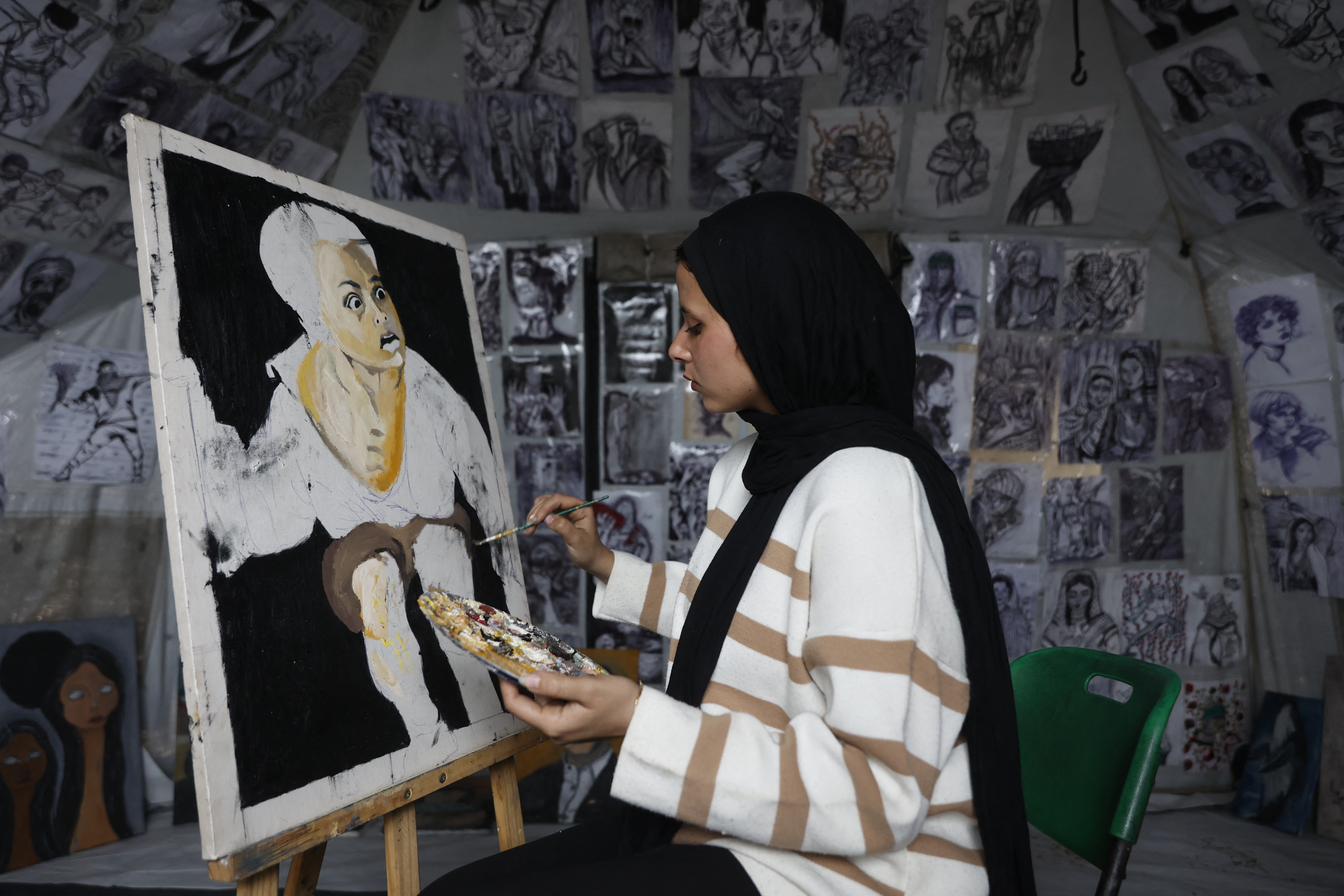 اللحظات، تتحول الخيمة إلى مرسم، والمأوى إلى حلم جماعي. ورغم الهدنة الهشة التي أوقفت القتال نسبيا، يبقى القلق حاضرا في كل تفصيلة من الحياة اليومية، الاتهامات المتبادلة بخرقها تبقي الخوف معلقا في الهواء، لكن مرح ومن حولها اختاروا ألا ينتظروا السلام الكامل ليعيشوا. هم يصنعون معجزاتهم الصغيرة الآن، باللون، وبالصبر، وبإصرار لا يقهر.