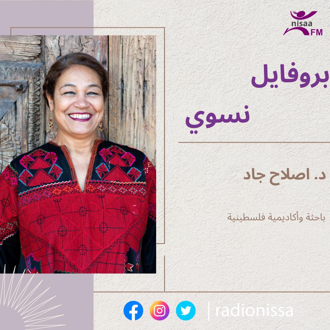 رام الله-نساء FM- د.إصلاح جاد هي أستاذ مساعد في النوع الاجتماعي والتنمية بجامعة بيرزيت. وهي مؤسس مشارك والمدير الحالى لمعهد دراسات المرأة في بيرزيت. وعضو المجموعة الاساسية في مجموعة